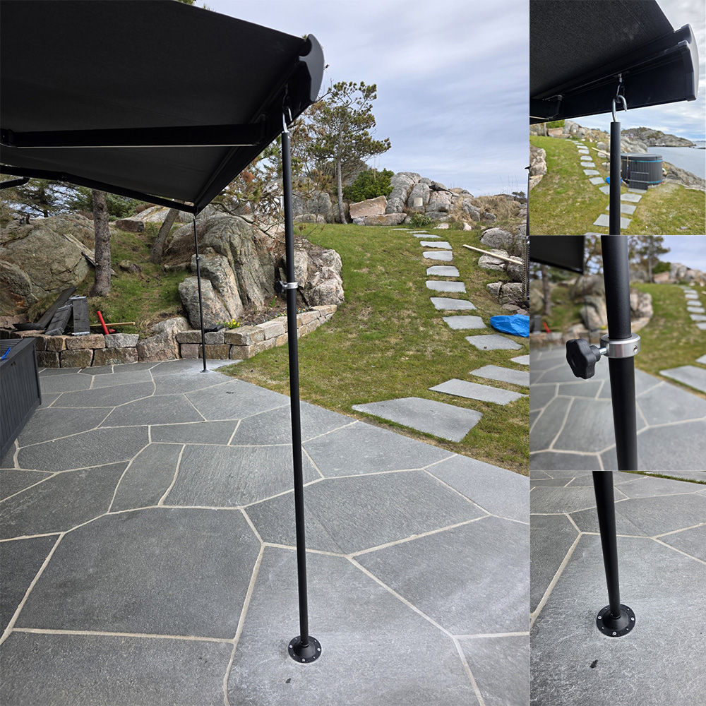 Gir ekstra stabilitet til terrassemarkisen når det blåser. VIKTIG: Støtteben må ikke monteres i kombinasjon med vindsensor.